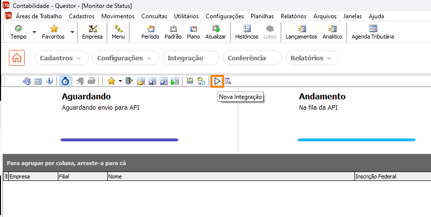 2. Clique no ícone de “Nova Integração” representado pelo ícone triangular.