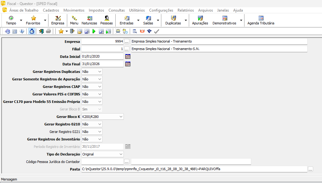 É importante ressaltar que essa rotina é responsável apenas pela geração dos arquivos, cabendo ao usuário realizar a transmissão por meio da aplicação própria do governo